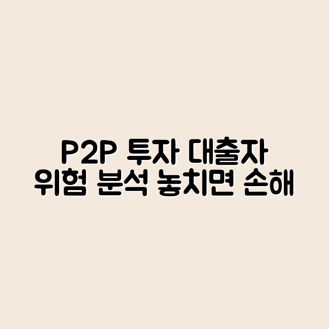 P2P 금융은 투자자에게 높은 수익률을 기대할 수 있는 기회를 제공하지만, 동시에 신중한 접근이 필요한 위험 요소도 존재합니다. 특히 대출자 관점에서 P2P 금융 투자의 위험을 정확히 이해하고 관리하는 것은 안정적인 투자를 위해 매우 중요합니다.